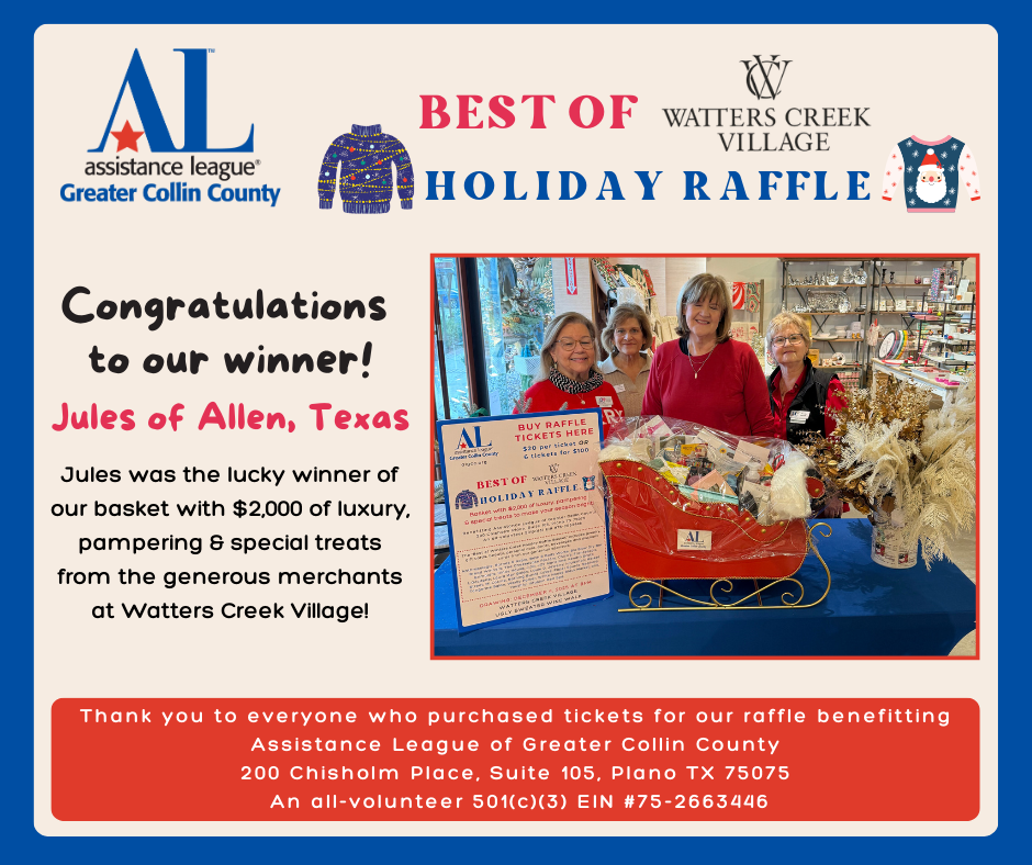 Assistance League of Greater Collin County is a 501(c)(3) all-volunteer, member-driven organization. EIN #75-2663446